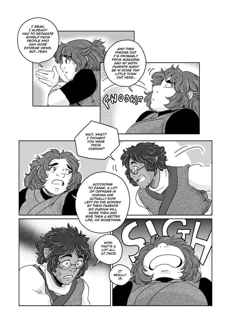 Pursuit - #23 No no, Talnor, it's okay! It's just Vos! Join in on the conversation on the home page! Get early pages & bonus content on Patreon or Ko-fi! Want my art on cool things you can use or wear? Merch shop here! Digital books/merch, postcards & sketch card shop!