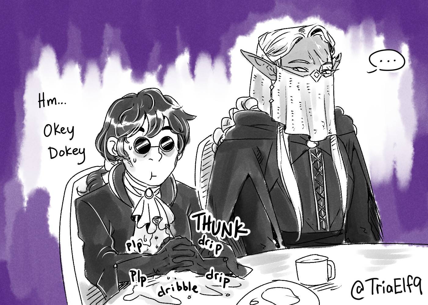 These doodles are from the newest episode of Critical Role. Do not read past this if you have not seen the most recent CR episode and don't want to be spoiled! This is your final warning! This is your final warning! Doodles will now commence! Oh, shut up, "Marco" SOME people aren't as good at lying as you are XD Experiment: Eat Food is going hashtag Badly "Where from?" XD Aww, bonding time XD ~If you like this week's doodles and want a print of one, I sell postcard prints of them made to order on my ko-fi shop!~ Get one here, or a set of 5 here! |